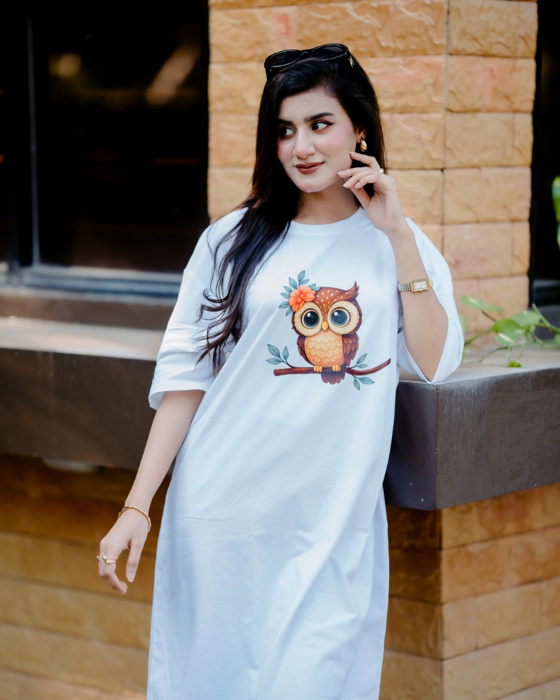 ৪ পিস লেডিস লং টি-শার্ট কম্বো ১১৯৯ টাকা (Smile Megenta/Pleasure Light Blue/OWL White/HEY Black)